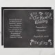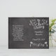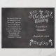 Utilisez ce programme pliable (non pré-plié) pour créer un programme imprimé de vos événements de jour de mariage. Impression de haute qualité. Célébrez les nuptiaux sur le rivage avec ce palmier aéré avec un sketché sur tableau noir de tableau noir avec un aspect craie blanche. Idéal pour un vintage rustique lors d'un mariage à la plage. Copyright de conception © CustomInvitesOnline.com