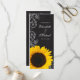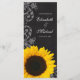 Un programme rustique de mariage de tournesol. Présentant un design en damier, des tourbillons fleuris et un tournesol jaune. Parfait pour un mariage campagnard, mariage tournesol, mariage grange et plus encore !
