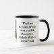 Weiße Kaffeetasse/Tasse mit schwarzem Interieur und Farbporträt von Ralph Waldo Emerson und seinem Zitat: "Fiktion offenbart die Wahrheit, dass die Realität verschleiert."