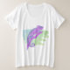 Un caméléon aux couleurs vives en violet, rose et bleu accroche une branche, superposée à un arrière - plan peint en vert pâle.