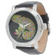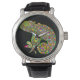 Uhr, Vintage Männeruhr mit schwarzem Lederarmband