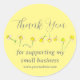 Ein fröhliches gelbes Dankeschön für die Unterstützung meines kleinen Firmenaufklebers mit Skizzen von Kamille-Blume und Grautext, die Sie bearbeiten können, um Ihren Bedürfnissen anzupassen, einschließlich Ihrer Website, um Kunden daran zu erinnern, wie Sie wieder zu finden.