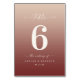 Champagne & Cinnamon Red Ombre Mit Monogramm Hochzeitsempfehlung Abendessen Tischnummern. Diese moderne schicke Tafelkarte ist klassisch und elegant mit einem subtilen Farbverlauf und einem hübschen Schriftart mit Schwänzen für die Schriftzeichen-Kalligraphie. Im neuen Farbraum gezeigt. Erhältlich in mehreren Farboptionen, oder fühlen Sie sich frei, die Farben aus dem Editor zu bearbeiten (klicken Sie weiter anpassen während der Personalisierung). Um mehr zu sehen, suchen Sie nach Chic Paperie's Hochzeitskollektionen 2022, um alle über Trend Designs und Hochzeitsfarben für dieses Jahr zu sehen.