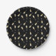 Feiern Sie stilvoll mit eleganten Geburtstagspapieren-Tellern. Dieses Design zeichnet sich durch ein verstreutes Muster an Champagnergläsern auf schwarzem Hintergrund aus. Die klassische Schwarz-, Weiß- und Goldpalette ist elegant. Ideal, um den Ton für eine unvergessliche Feier zu setzen! © Kimbellished, LLC