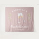 personalisierte Retro-Junggeselinnen-Abschied-Tapisserie in Rosa und Weiß mit Champagner-Gläsern ist perfekt als Junggeselinnen-Abschied Foto-Hintergrund. Feiern Sie Ihr Brautparty stilvoll mit dem passenden Champagner-Party-Thema in Rosa und Weiß, das perfekte Thema für die nostalgische Vintage 70er Braut und ihre Brautjungfrauen.