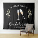 personalisierte Retro-Junggeselinnen-Abschied-Tapisserie in Schwarz und Weiß mit Champagner-Gläsern ist perfekt als Junggeselinnen-Abschied Foto Hintergrund. Feiern Sie Ihr Brautparty stilvoll mit dem Champagner-Party-Thema in Schwarz und Weiß, das perfekte Thema für die nostalgische Vintage 70er Braut und ihre Brautjungfrauen.