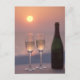 Farbiges Foto Art Postcard Champagnerflasche und zwei Glaswaren bei Sonnenuntergang Verändern durch Hinzufügen von Text und Vers