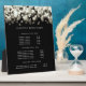 Elegant plaque with easel displays your services, price list or business information in white lettering on a crisp black background, with luminous white and champagne bokeh lights at the top. Includes three customizable headings and body text fields. To adjust layout, enter your text and then use the Customize function to change positioning and font sizes.