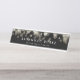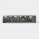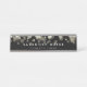 Eleganter Schreibtisch-Typenschild in knusprigem Schwarz mit hellen, weißen Lampen und Champagner-Kaskaden von oben. Personalisieren Sie Ihren Namen, Titel oder Firmennamen in modernen weißen Schriften.