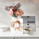 Save the Date eine Postkarte mit einem Champagnerbouquet mit Rose in Rosa, Schokoladenbraun, Beige und Bräune. Imitate goldgeprägtes Blattwerk und weitere Details. Bitte beachten Sie: Die goldgeprägten Details auf dieser Postkarte sind Goldimitation. Nicht goldenes Blattwerk.