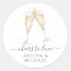 Festliche und elegante Aufkleber für Ihre Verlobungsfeier, das Probe-Dinner oder die Hochzeit bieten eine Champagnerbrille in Aquarell, gefüllt mit Bläschen. Personalisieren Sie sich mit zwei Textzeilen, darunter mit "Beifall zur Liebe" und den Namen des Paares.