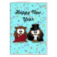 Niedliches Eule-Paar bereit, um Neujahr zu feiern.