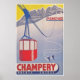 Champery Schweiz Vintages Skipposter mit rotem Tramskilift.