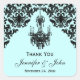 Ce chandelier bleu et noir damassé carré de 1,5 po de couleur bleu aqua vous rend service grâce à l'autocollant et/ou le sceau d'enveloppe correspond au faire-part de mariage ci-dessous. Il y a aussi des enveloppes assorties et de l'affranchissement pour vous permettre d'envoyer une invitation superbement coordonnée. Vous pouvez modifier le texte pour dire ce que vous voulez, et vous pouvez également changer la taille de l'autocollant à 3" et orner vos faveurs mariages/fêtes avec. Si vous avez besoin d'autres articles correspondants dans cette conception, veuillez envoyer votre demande par courriel à niteowlstudio@gmail.com.
