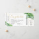 Modifiez le faire-part de date pour une mise à jour des plans pour un thème de voyage ou un mariage de destination de plage qui a été reporté ou reprogrammé en raison de restrictions de voyage, ou d'autres raisons personnelles. Feuilles de palmiers verts tropicaux (fronds) sur une conception simple, moderne et minimaliste carte d'embarquement plan de conception carte de billet d'avion. Tout le texte peut être personnalisé, ainsi que le texte et la couleur arrière - plan. Cliquez sur CUSTOMISER PLUS LOIN pour effectuer cette opération dans l'éditeur avancé.