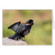 Un oiseau-noir à ailes rouges chantant sur une rampe de pont. Cette image a été prise à New Paltz, New York par Debbie Quick of Debs Creative Images. Pour voir d'autres photos de Debbie, consultez son site Web à l'adresse suivante : www.debscreativeimages.com