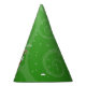 Ce casquette de fête de papier est vert avec des tourbillons verts plus légers et un gnome avec une barbe blanche à l'intérieur d'un stock de Noël rouge entre sucres de canne et feuilles saints. Customisez le texte Joyeux Noël avec le modèle.