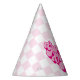 Créez votre propre casquette de soirée en papier de style rétro rose et rose chaud "Super One" pour le premier anniversaire de votre fille. Vous pouvez modifier toutes les couleurs dans le texte et les graphiques vectoriels vérifiés. Customisez avec le texte du système pour créer votre propre design personnalisé. Motif en damier blanc et rose pastel.