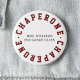 Offizielles Class Chaperone Button mit benutzerdefiniertem Text in der Mitte. "Chaperone" in dunkelrot; Benutzerdefinierter Text in schwarz.