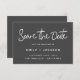 Holzkohle Grau (grau) Modernes und elegantes Minimalistisches Handschrift Save the Date Hochzeitspostkarte. Die Save the Date einladende Einladungskarte beinhaltet eine moderne, handgeschriebene Schrifttypografie mit einem schicken und schlichten Design, mit dem Sie Ihre individuelle Verlobung-Fotografie hinzufügen können.