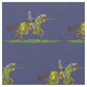 Ein Ritter aus dem 15. Jahrhundert, der mit Plattenrüstung verkleidet ist, senkt seinen Lanz und wirft seinen Fußgänger (Kriegspferd) in eine Ladung in dieser originalen Illustration von Richard H. Fay.