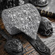 Dieses gotisch inspirierte Design inspiriert sich von den Charnelhäusern und Friedhöfen Europas des Mittelalters. Die Möwen verbinden sich mit den Steinreben in diesem eindrucksvollen Design. Die Vorder- und Rückseite präsentieren verschiedene Designs, die diese Krawatte umkehrbar machen!