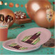 Set von acht 9" Papier-Tellern mit einem Bild eines leuchtenden Mond, Rosa und Grün Art Deco Design auf staubige Rose und optionalem Text. Dieses Set von Tellern ist nach dem Lied Charleston von Arthur Gibbs und Paul Whiteman benannt, Nummer 20 auf den Top 100 Lieder der 20er Jahre. Siehe dazu passende Süßigkeiten, Espressotasse, Tasse, Krug, Schuss Glas, Teekanne und Untersetzer. Sehen Sie sich die gesamte Roaring 20s Plate Kollektion im NAHRUNGSMITTEL/BEV an. | Abschnitt Geschirr.