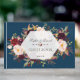 Charmantes Design, Burgund, Rot, Marsala Floral. Es verfügt über prächtige Burgund, rote Marsala Aquarellfarben Blume, eine halbtransparente Form, alle auf einem marineblau Hintergrund. Verwenden Sie das Tool Anpassen, um Ihre Informationen hinzuzufügen. Für passende Artikel besuchen Sie bitte meine Sammlung von Burgund Red Marsala Floral