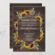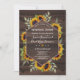 Rustikales, aber dennoch modernes Kartendesign mit Aquarellblumen-Blumenbouquets, schicke Holzform mit halbdurchsichtigem Rahmen, Pfeilen mit Herz und Sonnenblumen als Trenner, alles auf einem alten Scheunenhintergrund. Verwenden Sie das Tool Anpassen, um Ihre Informationen hinzuzufügen. Matching Artikel finden Sie in meiner rustikalen Sonnenblumen Old Barn Collection.