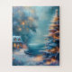 Ein traumhaftes Gemälde von einer bezaubernden Hütte am Meer und einem Weihnachtsbaum an Weihnachten.