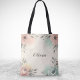 Diese personalisierte, trendige Tüte besticht durch hübsche, skizzenhafte Blume an den Ecken mit sanften Aquarelltexturen in Rosa und Minzgrün.