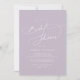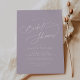 Ces élégantes invitations à la douche nuptiale violet de charme sont parfaites pour un wedding shower simple. Le design minimaliste moderne présente une lavande pastel intemporelle violet et une calligraphie romantique avec style conte de fées bohème, parfait pour un mariage de jardin de printemps ou d'été.