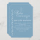 Un beau design abstrait avec une colonnade de tourbillons blancs sur un arrière - plan bleu moyen avec une croix assortie. Vous voulez économiser de l'argent ? Imprimez cette carte sur du papier carré de base.La carte est facile à customiser avec votre libellé, police, couleur de police et choix de six types de papier.