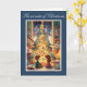 Charmant geschnittene Weihnachtskarte mit Kindern am Baum, gewartet, um feierliche Geschenke unter seinem Glanz zu öffnen.