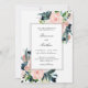 Eine wunderschöne Hochzeitseinladung in einem beliebten Farbschema aus Rosa und Mitternacht Blau, diese Einladung Set den Ton für eine charmante Feier. Schöne Bouquets mit Aquarellfarben und gemischte Blüten in Rosa und Mitternachtsblau mit nachfolgender Vegetation und gezeichneten Elementen ergänzen die gegensätzlichen Ecken dieses Designs. Ein dünner, doppelter Rahmen umgibt Ihren Text, um der Einladung Eleganz zu verleihen. Personalisieren Sie den Text mit Ihren Hochzeitsdetails.