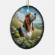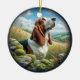 • This adorable Basset Hound in a beautiful setting makes a charming addition to your home or holiday decor.