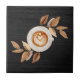 Brighten your walls with this heartwarming accent tile, showcasing a delicate heart-shaped latte art design within a classic white mug. Framed by rich brown leaves on a deep, subtly textured black background, its illustrative style brings a touch of warmth and affection to your decor. An ideal piece for creating a cozy, inviting atmosphere in any coffee lover's space. Shop the look with other tiles from the coffee tile collection to create a unique coffee art display