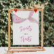 Tauchen Sie ein in eine Welt der Süße mit unserem bezaubernden Schild "Süßigkeiten und Leckereien", das ein bezauberndes Schwanz-Design in lila Farbtönen zeigt. Dieses editierbare Schild verleiht Ihrer Veranstaltung eine charmante Touch und führt Sie zu köstlichen Desserts und Leckereien. Personalisieren Sie es, um das Ambiente Ihres Party zu Anzug und lassen Sie Ihren Desserttisch wie eine Schatzkammer unter dem Meer glänzen!