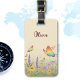 Dieses personalisierte Gepäckanhänger verfügt über einen traumhaften, pastellfarbenen Schmetterlingsgarten, in dem Regenbogengeflüchtete Schmetterlinge unter sanften Wildblumen tanzen. Mit einem sanften Hintergrund aus rosa, blau, lavenderfarben und gelben Farbtönen schafft diese charmante und skurrile Illustration eine magische und ruhige Atmosphäre.