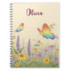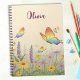 Dieses personalisierte Notizbuch verfügt über einen verträumten pastellfarbenen Schmetterlingsgarten, in dem Regenbogengeflüchtete Schmetterlinge unter sanften Wildblumen tanzen. Mit einem sanften Hintergrund aus rosa, blau, lavenderfarben und gelben Farbtönen schafft diese charmante und skurrile Illustration eine magische und ruhige Atmosphäre.