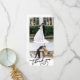 carte photo Merci pour votre mariage avec deux photos et Merci écrit dans un charmant script noir. Ajoutez une note de remerciement à la main de l'autre côté, qui présente des lignes grises peu claires.