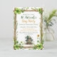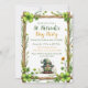 A rustic, nature‑themed invitation layout with bright green clovers and playful illustrated details. All text and elements are customizable, and the matching clover pattern appears on the reverse side.