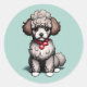 Charming White Toy Poodle auf hellblauem Hintergru Runder Aufkleber