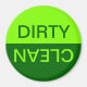 Un simple demi-vert foncé et demi-chartreuse sale par rapport au design d'aimant lave-vaisselle propre.