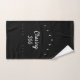 Cette serviette de boule de boules noire est décorée de marques de voie de boules blanches (points et flèches) et de l'expression "Chasing 300".