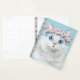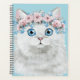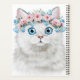 Ce design présente un joli chaton blanc portant un halo aux fleurs rose et bleue.