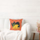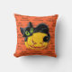 Cet oreiller de lancer est montré en noir et orange avec une jolie conception Happy Halloween noir chat design. Customisez ce coussin ou achetez tel quel.