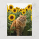 Chat au gingembre mignon dans Sunflower Carte post