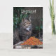 Les mots à l'intérieur de cette carte indiquent, "Pâques est quand les miracles se produisent. Joyeuses Pâques." Sur l'avant de cette carte est le mot, "réjouissez-vous" et une photographie (ou abandonné) d'un chat sauvage très beau qui regarde pour être ragondin du Maine de partie. Ce beau chat se repose dans le lierre regardant très reconnaissant pour la grande pile de la nourriture que les personnes très bienfaisantes ont laissée sur un tronçon d'arbre pour lui et de ses autres amis de chat. Sur le gauche intérieur de cette carte est le vers de bible du 28:6 de Matthew qui indique, "il n'est pas ici ; il s'est levé, juste comme il disait. Venez voir l'endroit où il s'étendent." Une carte parfaite pour chaque amoureux des chats.