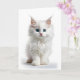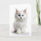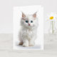 Doux chaton blanc à poil long avec de beaux yeux bleus sur cette carte de vœux vierge.